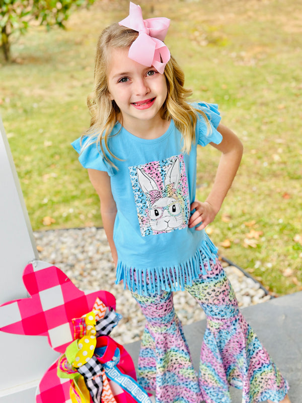 Classy Rabbit Fringe Top with Bell Pants Set