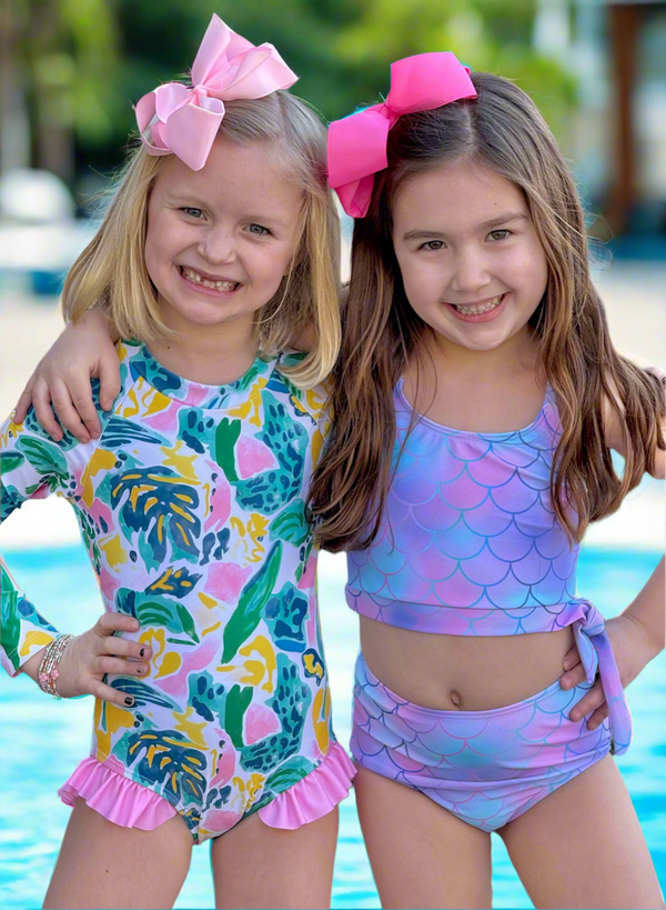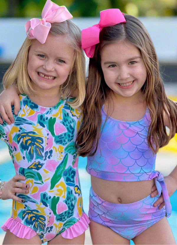 Mermaid Tail Print Tie Top Bikini Swimsuit